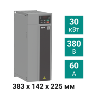 Преобразователь частоты ПЧВ3-30К-В [М01] предназначен для управления электродвигателями мощностью 30,0 кВт. Номинальный выходной ток – 60,0 А, использует трехфазный источник питания переменного напряжения 380 В.
