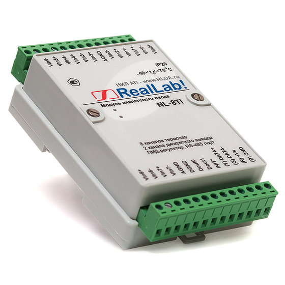 | Подключение: | 8 дифференциальных каналов аналогового ввода сигналов термопар типов K (ТХА) J (ТЖК) B (ТПР) L (ТХК) E (ТХКн) или S (ТПП 10%) R (ТПП 13%) N (ТНН) T (ТМК) или напряжения с программно устанавливаемыми диапазонами ±15 мВ, ±50 мВ, ±100 мВ, ±500 мВ, ±1 В, ±2,5 В, или тока до ±20 мА |