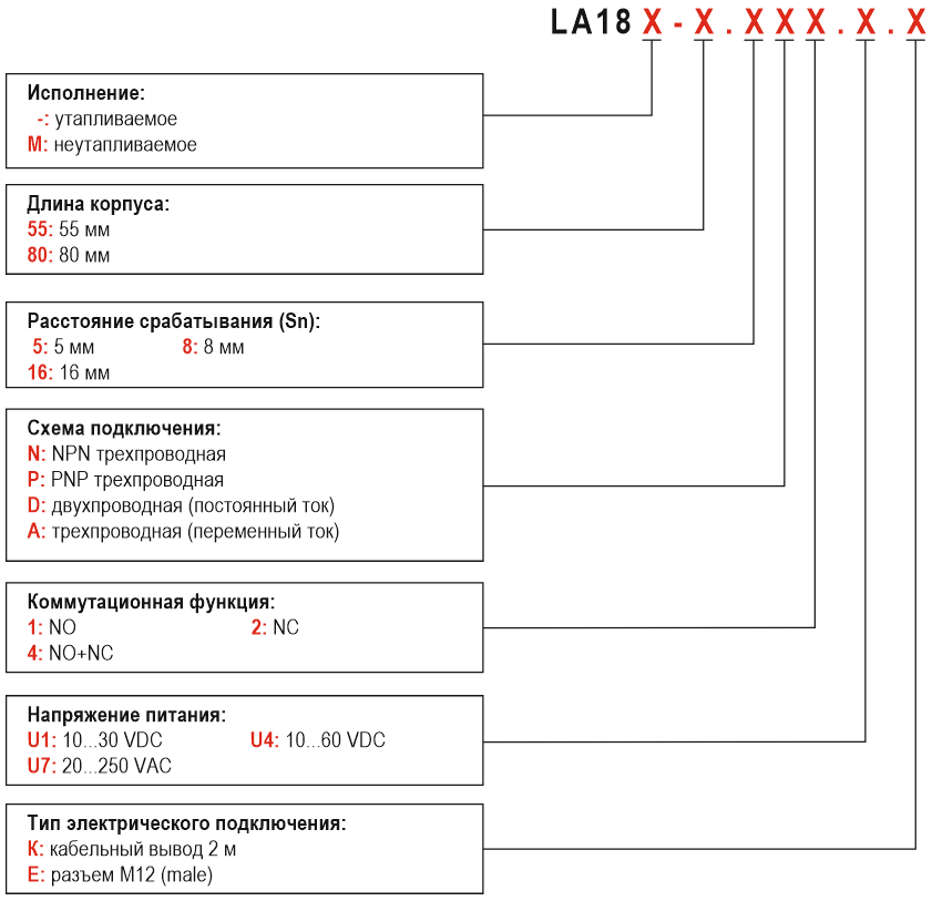 Общие технические характеристики индуктивных датчиков серии LA18:
