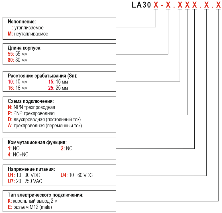 Технические характеристики индуктивных датчиков серии LA30: