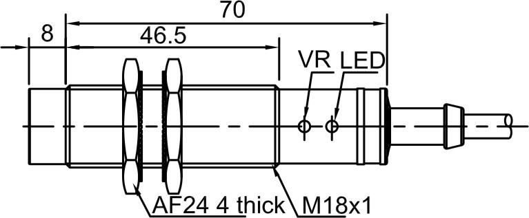Датчик имеет надежный резьбовой корпус, материалом изготовления для него служит никелированная латунь. Устойчив к внешним воздействиям, что позволяет использовать его в тяжелых условиях эксплуатации, в том числе пыль, вибрация. Тип выхода — PNP с функцией переключения NO+NC. Рабочее напряжение питания — 12-24 DC.
