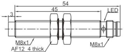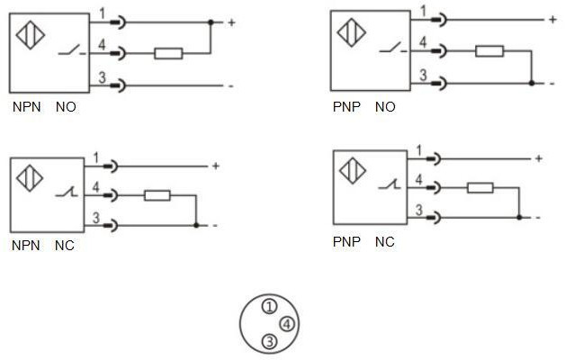 Расстояние срабатывания-4 мм, поддерживает подключение через разъем M8.