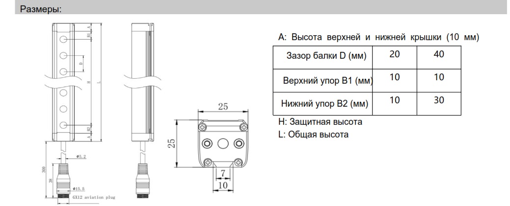 Позволяет контролировать зону шириной до 6 м и высотой 600 мм, при этом расстояние между лучами составляет 49 мм.
