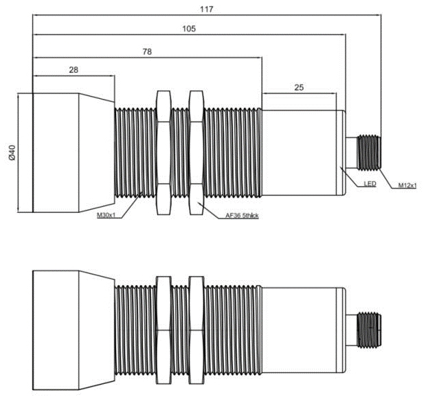 Размер резьбы корпуса: M30